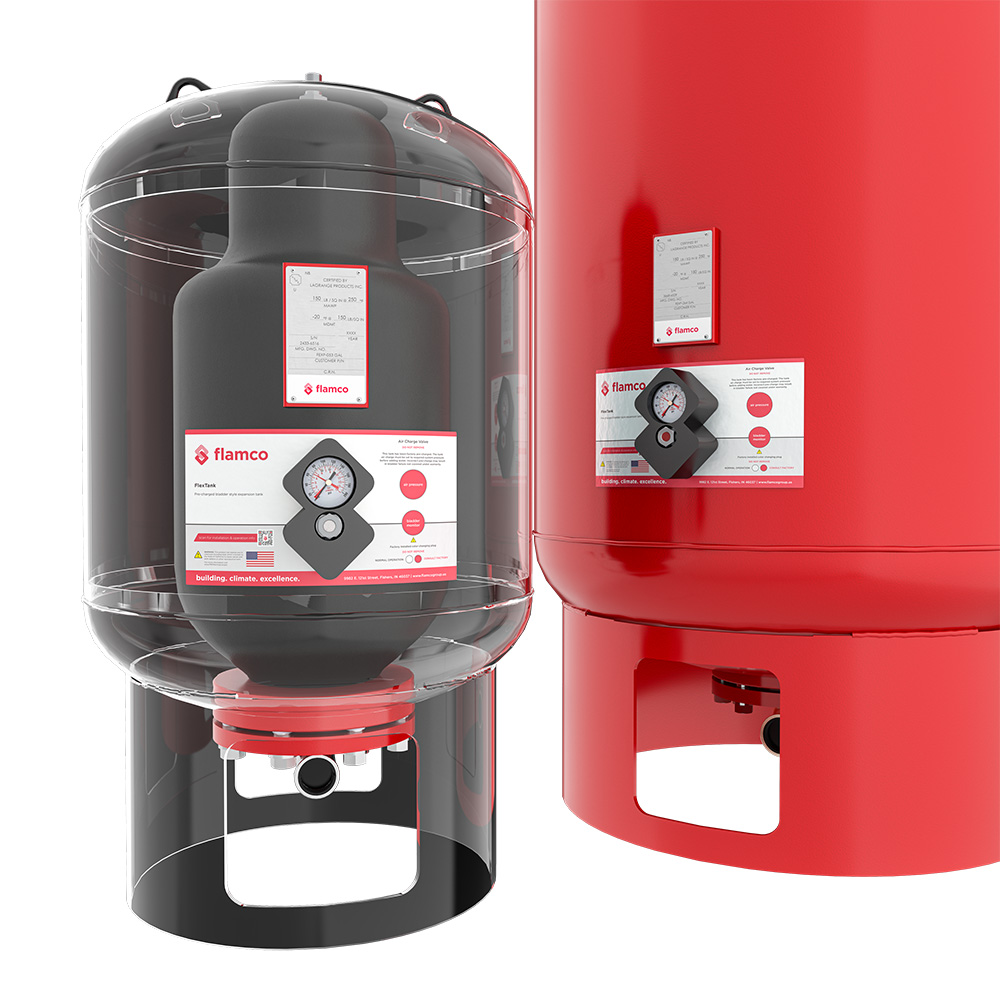 The FlexTank series of ASME expansion tanks are designed to control the pressure in a heating or cooling system, especially in systems with large variations of static pressure and the pre-set pressure relief valve.